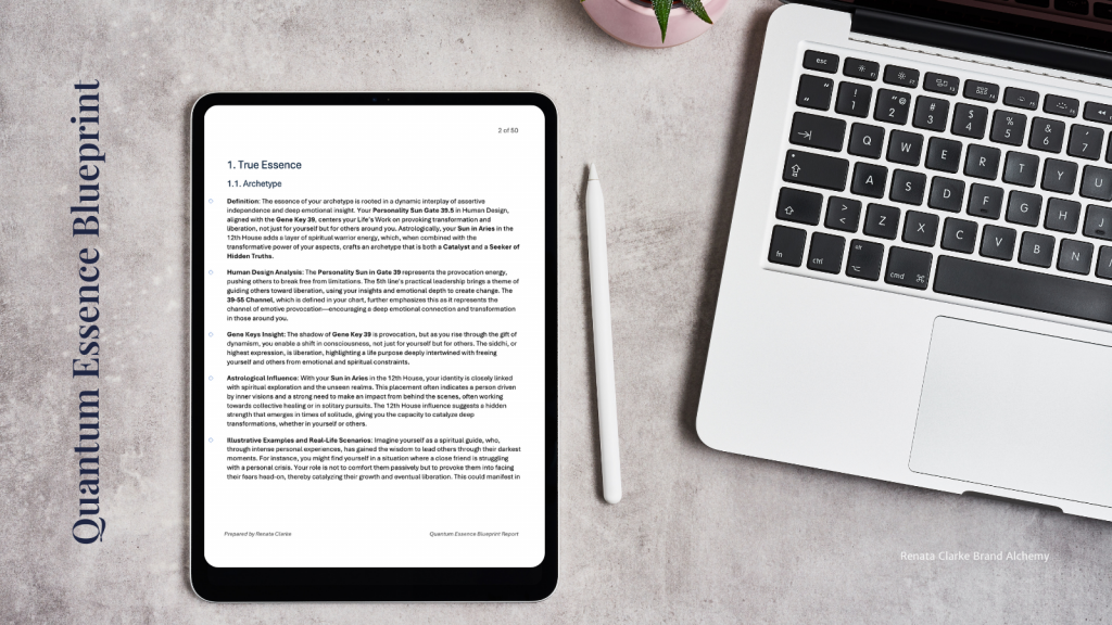 Your Soul Archetype offers a glimpse into the essence of your brand, but there’s so much more to uncover. By exploring your Quantum Essence Blueprint, you’ll dive deep into your astrological placements, Human Design, Gene Keys, and numerology to unlock the core of who you are. This comprehensive report & session help you understand your energetic makeup on multiple levels, empowering you to live in alignment with your true self. Whether you’re looking to deepen your self-awareness or transform your business, the Quantum Essence Blueprint is a great start to your journey.