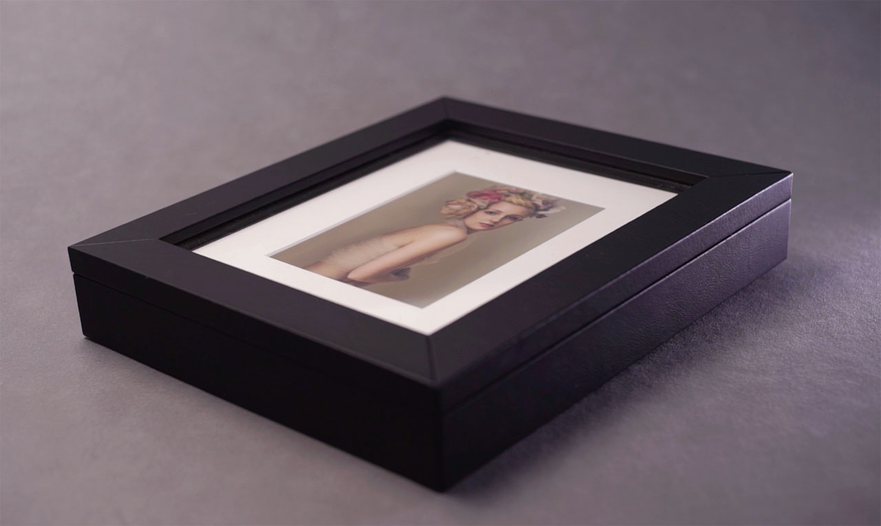 The innovative yet classy design of the Folio Box transforms it into a table-top frame when vertical. The perfect details confer a luxurious look & feel. Each box is hand-made in Italy. Enjoy the most popular presentation box in the portraiture industry.